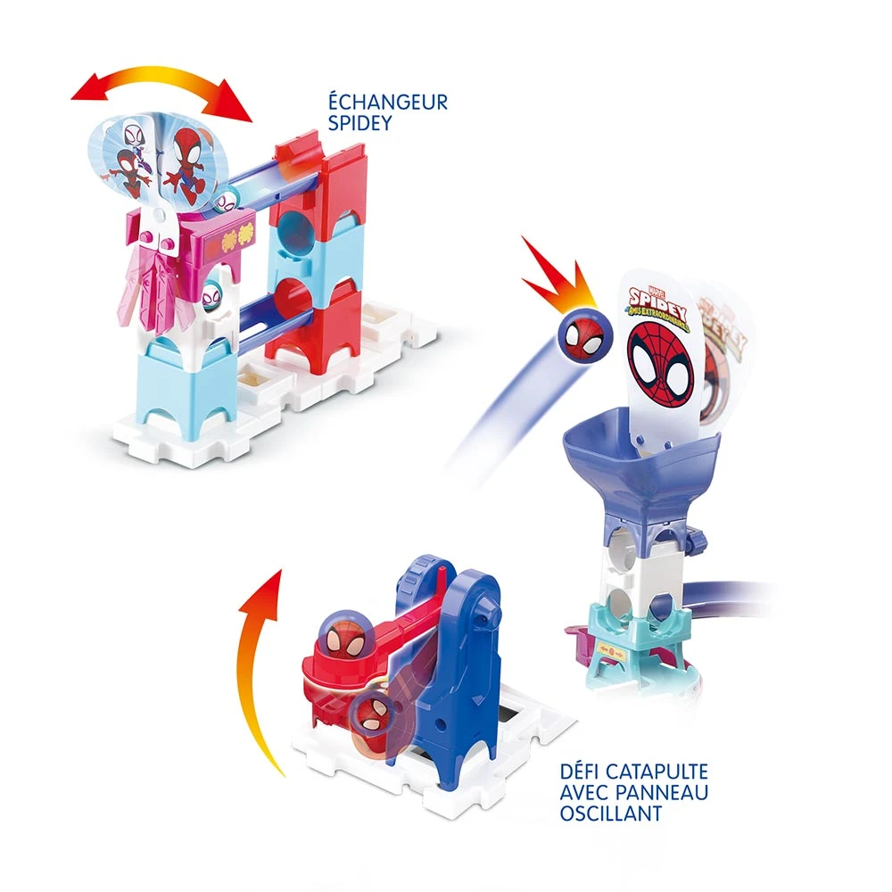 - Cascades de super-héros : le nouveau défi catapulte et l’échangeur Spidey permettent de nouvelles cascades en propulsant les MarbleBilles à l’effigie de Spidey, Spinn et Ghost-Spider dans le circuit.