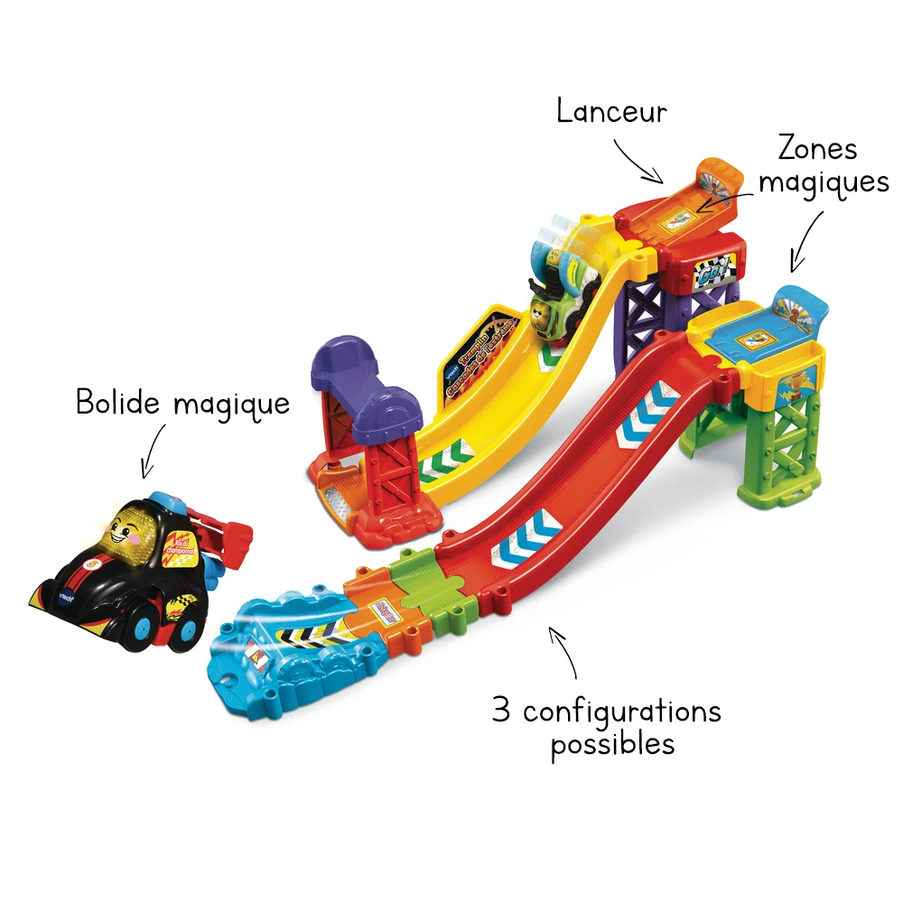 2 zones Magiques incluses font réagir les Tut Tut Bolides par des phrases, des sons rigolos et des mélodies !