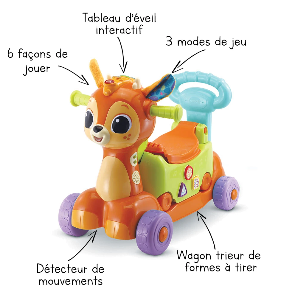 Ce trotteur-porteur interactif VTech est un jouet d’éveil idéal et recommandé pour les enfants à partir de .