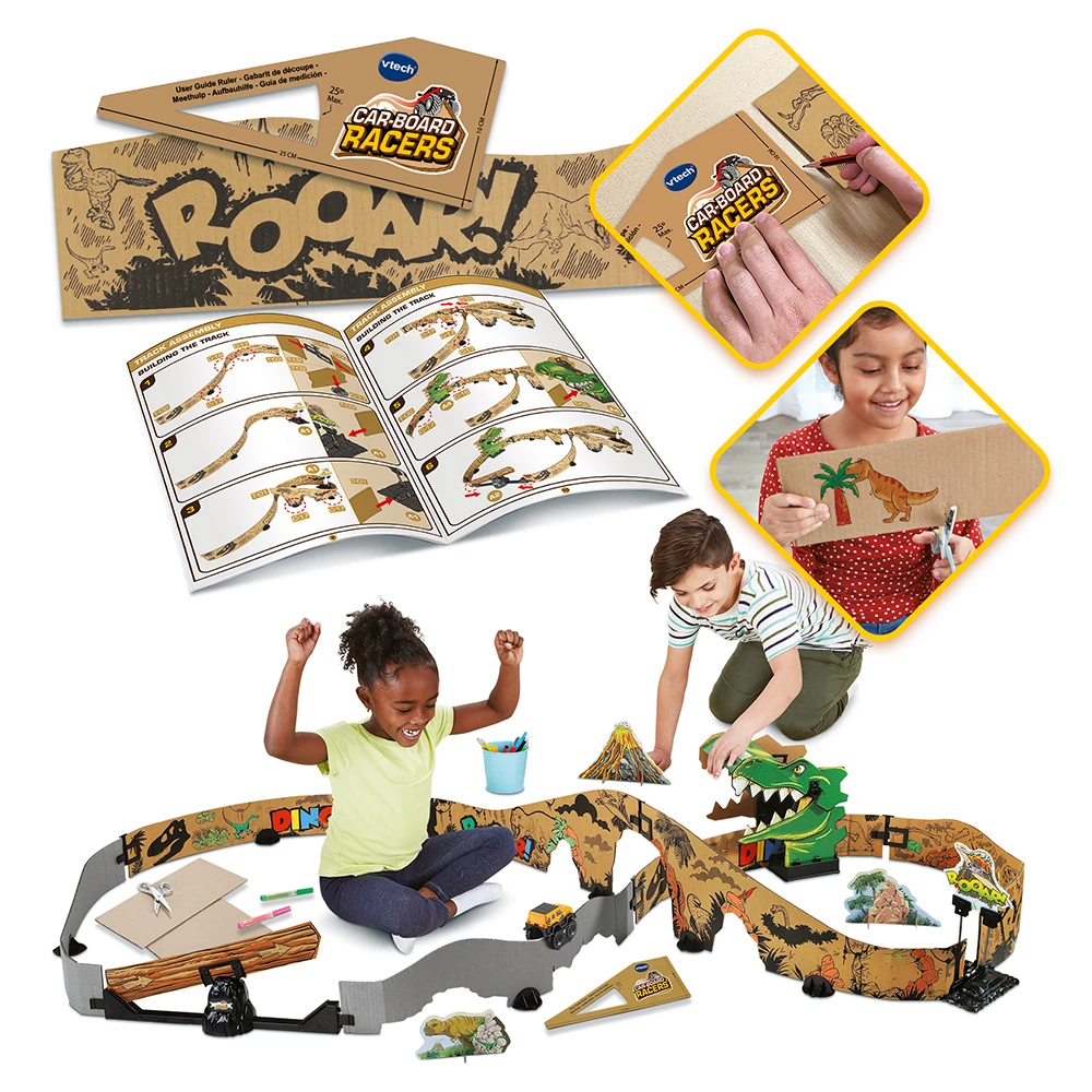 Votre enfant a la possibilité d’étendre son circuit à l’infini en ajoutant de nouvelles pistes à partir de cartons qu’il trouve à la maison. Il peut également colorier et customiser son parcours pour le rendre encore plus cool et le personnaliser à son goût !